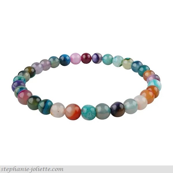 ACHA019-23614BEL / Armband (auf Elastikfaden), Steine/Schliff (6 mm Kugeln aus mehrfarbigem Achat), Verschluss (kein Verschluss, endlos, elastisch), Länge (19 cm) / 19.- €uro