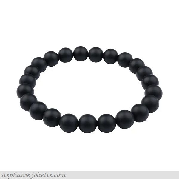 ACHA019-23615BEL / Armband (auf Elastikfaden), Steine/Schliff (8 mm Kugeln aus schwarzem Achat), Verschluss (kein Verschluss, endlos, elastisch), Länge (19 cm) / 19.- €uro