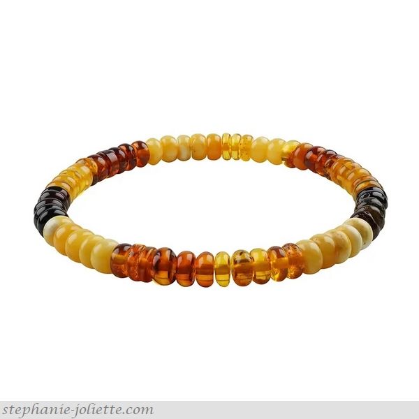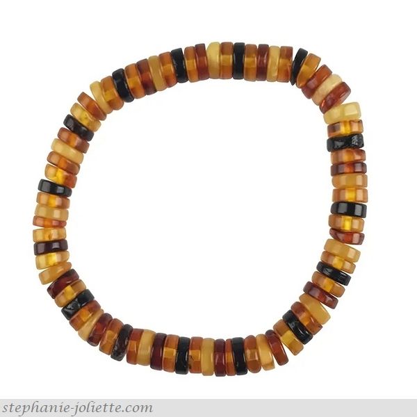 BERN035-23606BEL / Armband (auf Elastikfaden), Steine/Schliff (6.5x2.5 mm Scheiben aus Naturbernstein), Verschluss (kein Verschluss, endlos, elastisch), Länge (19 cm) / 35.- €uro