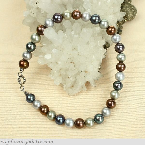 PERL035-115BSI / Armband (auf Faden), Süßwasser-Zuchtperlen grün-grau-braun 6-7 mm, Verschluss (Federring aus 925er Sterlingsilber), Länge (21.5 cm) / 35.- €uro