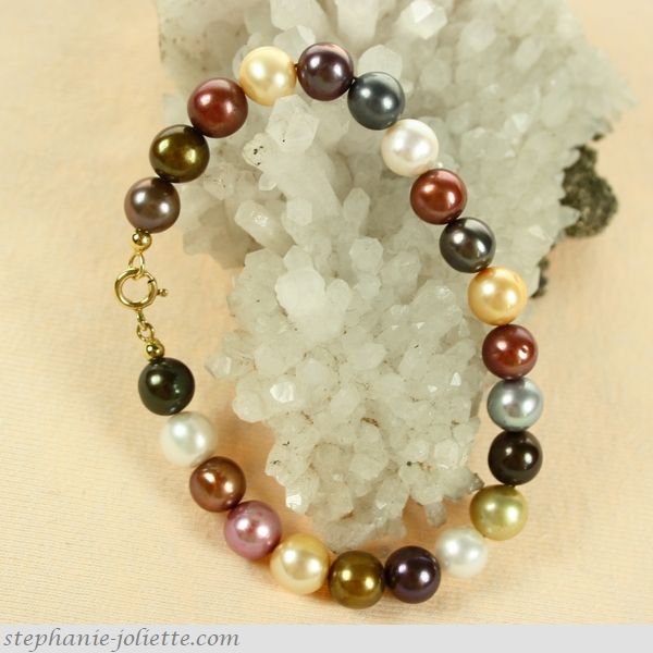 PERL049-070BDB / Armband (auf Faden), Süßwasser-Zuchtperlen in Farben 8-9 mm, Verschluss (Federring aus Doublé, Goldauflage), Länge (21 cm) / 49.- €uro