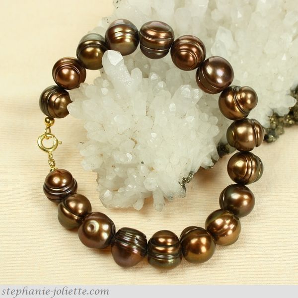 PERL059-112BDB / Armband (auf Faden), Süßwasser-Zuchtperlen braun ca. 12x10 mm, Verschluss (Federring aus Doublé, Goldauflage), Länge (21 cm) / 59.- €uro